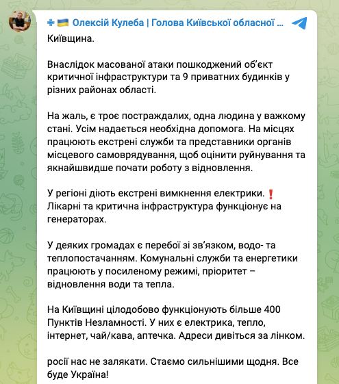 Forwarded from КМВА (Київська міська військова адміністрація) ⚡️Київ витримав одну з найбільших ракетних атак з початку повномаштабного вторгнення!