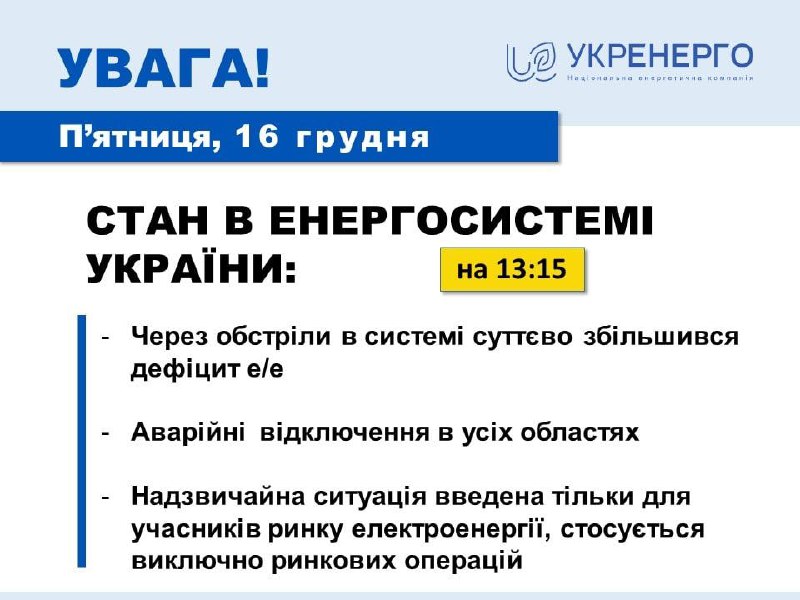 ❗️Укрэнерго объявило чрезвычайную ситуацию