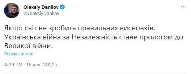 ❗️Секретарь СНБО Алексей Данилов заявляет, что украинская война может перерасти в Великую