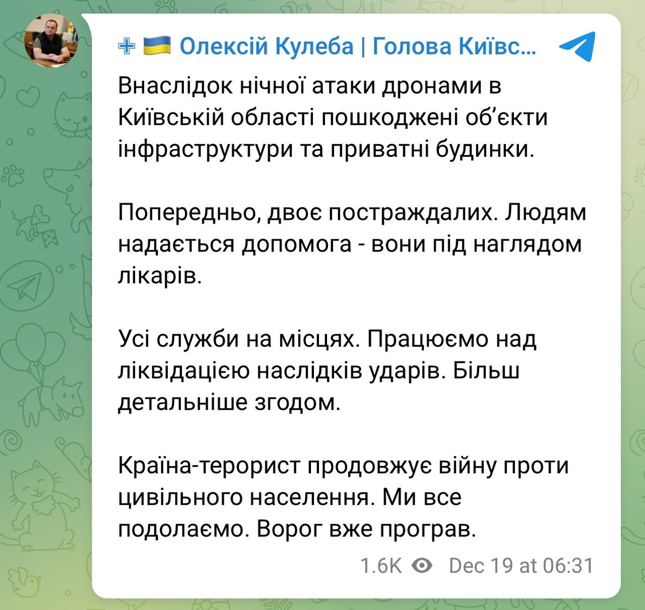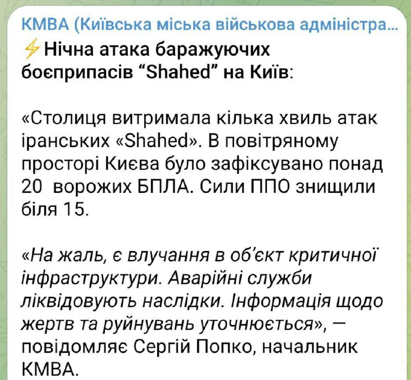 Officially from the Kyiv City Military Administration