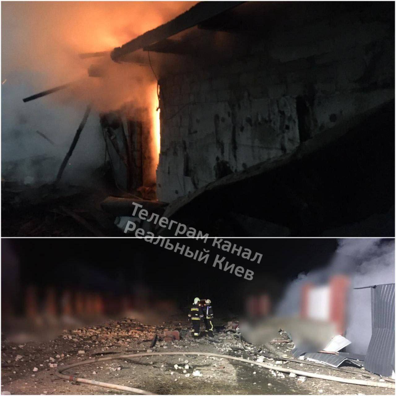 Перше відео – пожежа внаслідок прильоту в Обухові, друге — Вишгород