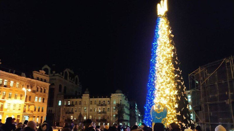 🎄 The lights of the main Christmas tree of the city were lit in Kharkiv. This year, because of the war, it was placed at the University metro station.