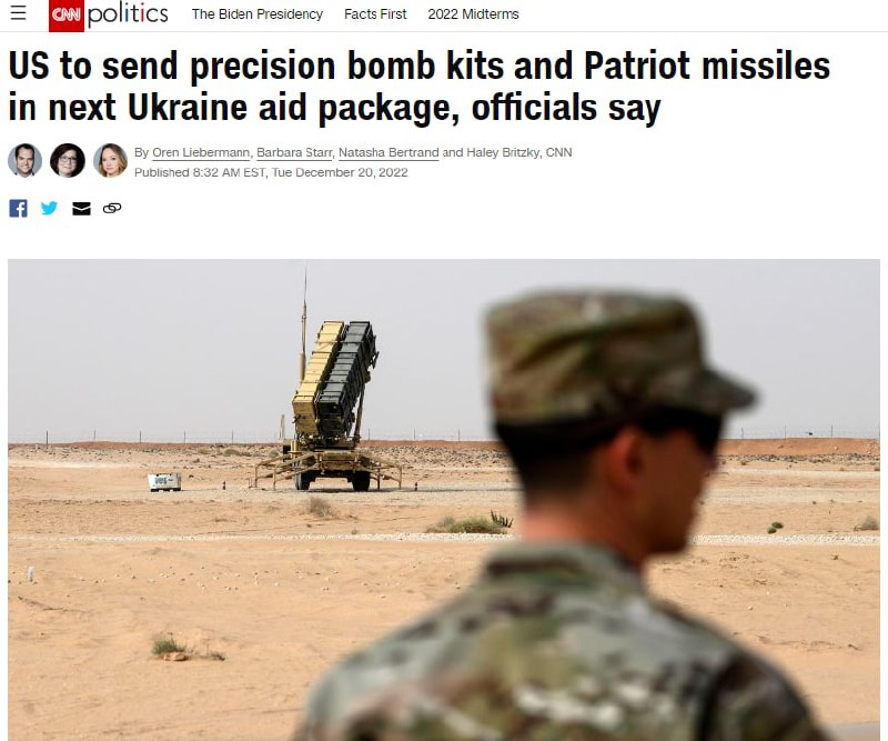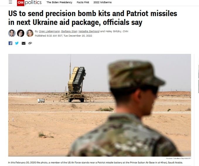 Forwarded from SOCIAL NEWS The White House has confirmed that it plans to give Ukraine the Patriot system. It will be in a new aid package worth almost $2 billion to be announced by US President Biden. They will train the Ukrainian military to use the system in a third country, the White House explained.