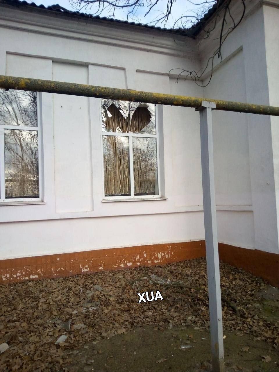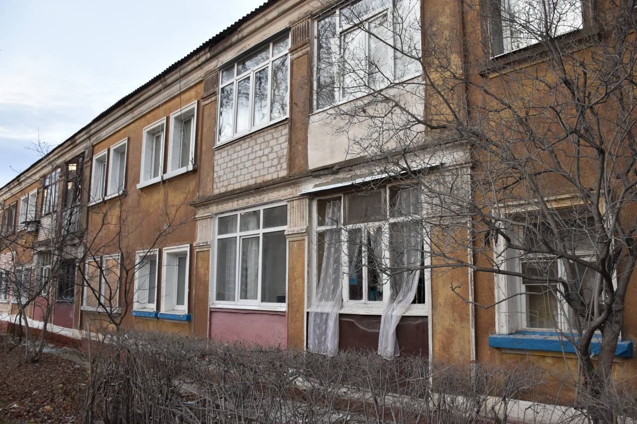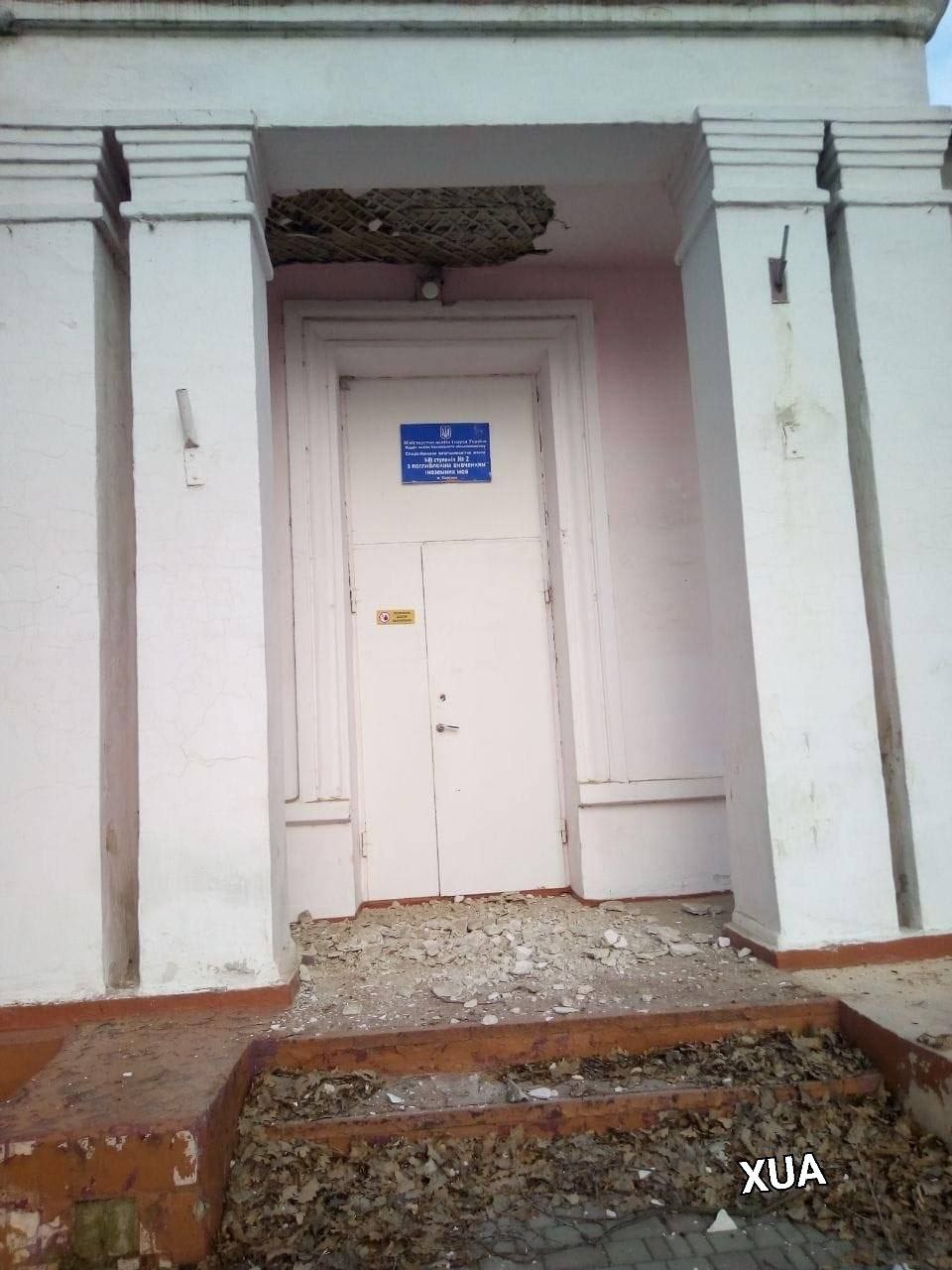 The school building in Nova Kakhovka after another arrival.