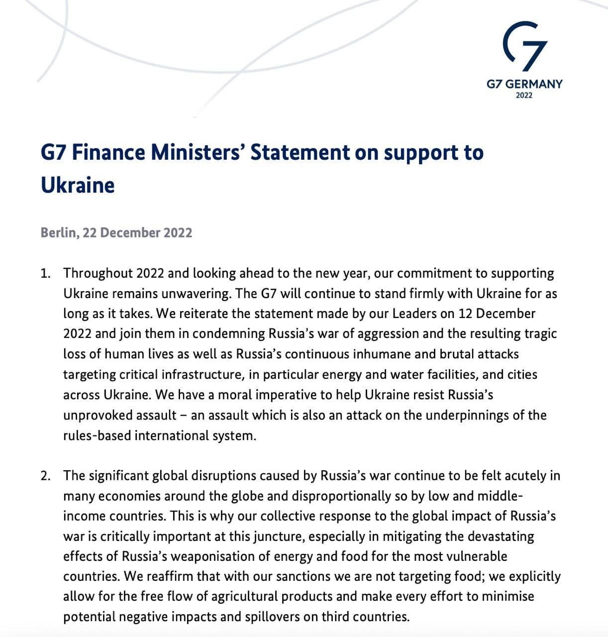 Глави держав підбили підсумки 2022 року, що приніс надзвичайно складні історичні виклики через повномасштабну війну, яку 24 лютого розпочала Росія проти України.