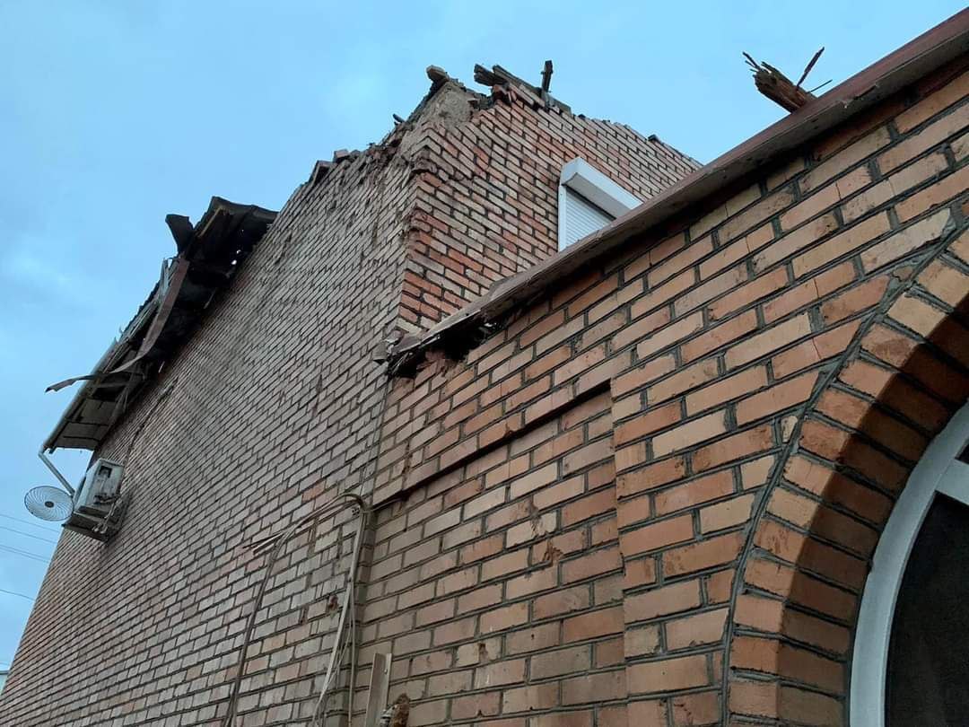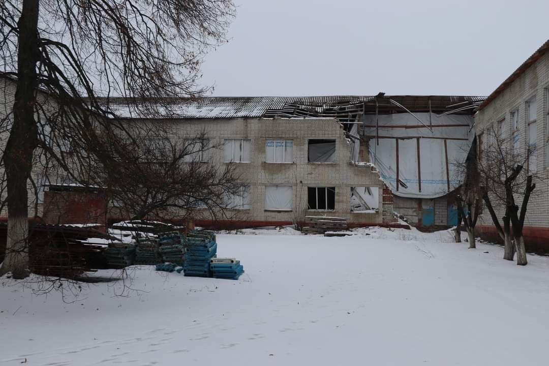Здание школы в Новой Каховке после очередного прилёта.