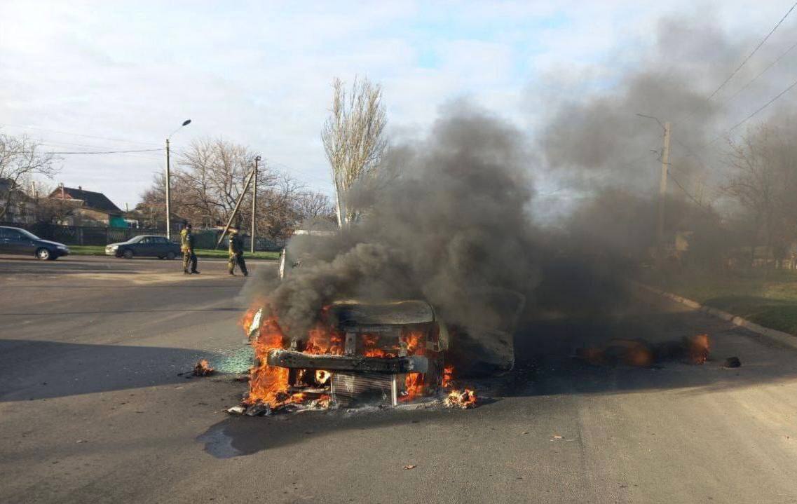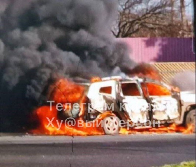 ❗️This is reported to be the site of a car explosion in Kakhovka, which killed the head of the village of Lubimovka in the Kherson region, Andrei Shtepa, who was appointed by the Russians.