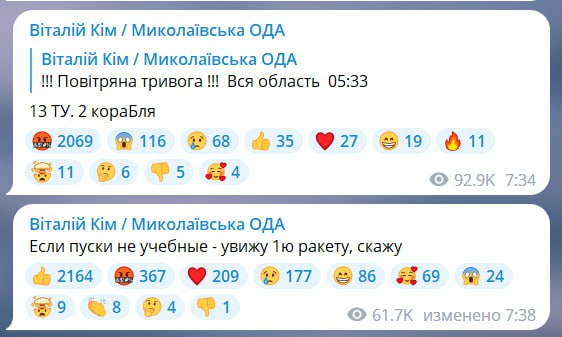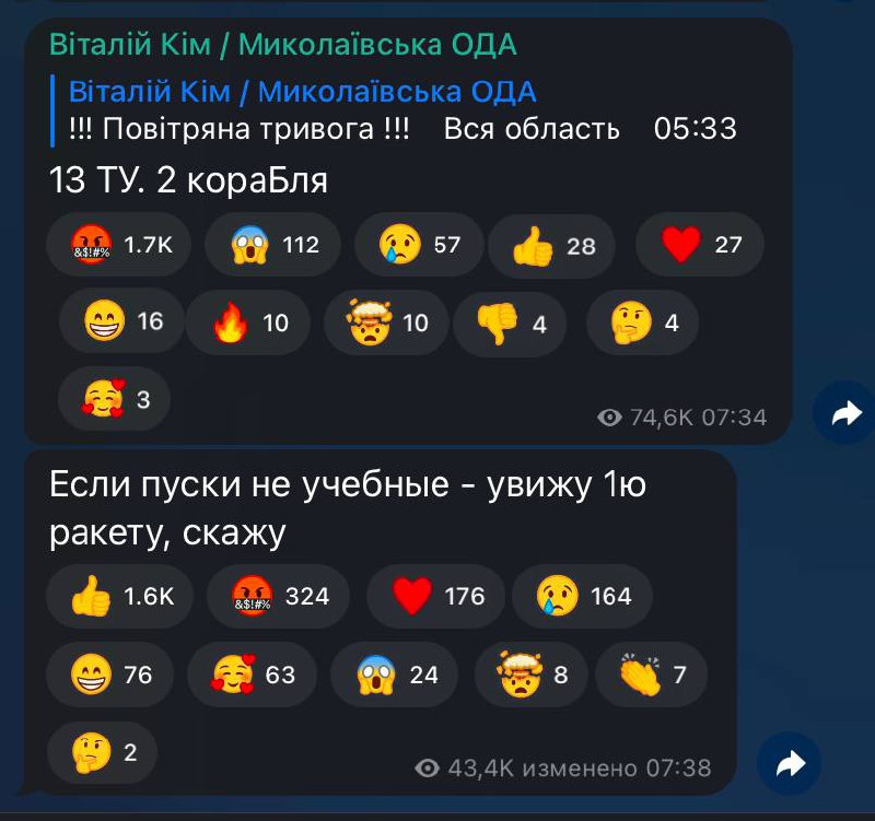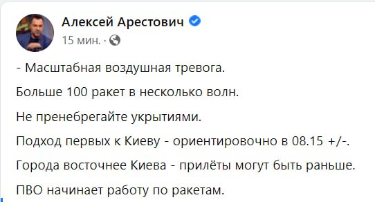 For the most optimistic: the monitoring group reports that currently no missile launches have been recorded and it may be a redeployment, so we believe in the best, but we are preparing for the worst, namely, charge all the power banks, batteries and so on.