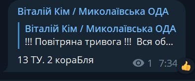 Enemy aviation activity is also observed, which is why a large-scale alert was declared almost all over Ukraine.
