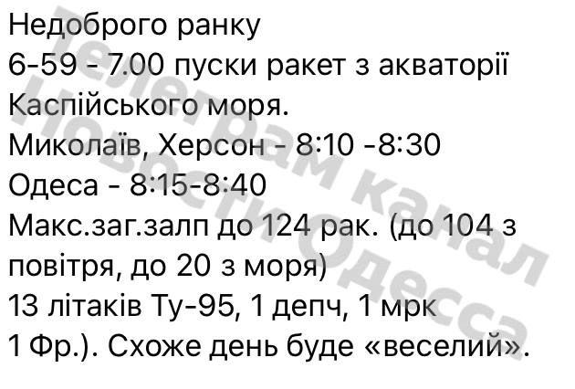 Для найоптимістичніших: моніторингова група повідомляє, що на цей час пусків ракет не зафіксовано і це можливо передислокація, тож віримо в найкраще, але готуємось про всяк випадок до найгіршого, а саме ставте заряджати всі повербанки, аккумулятори та інше.