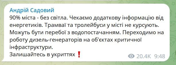 ⚡На Львівщині застосували аварійні відключення електроенергії через пошкодження енергоінфраструктури.