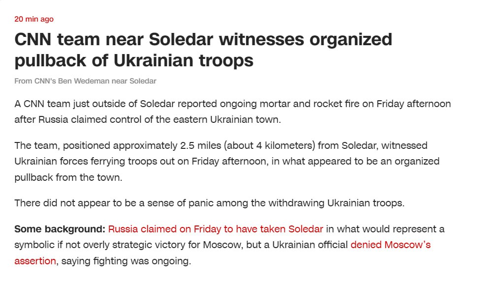 Инфа CNN о том, что наши бойцы отступили - не подтверждается.