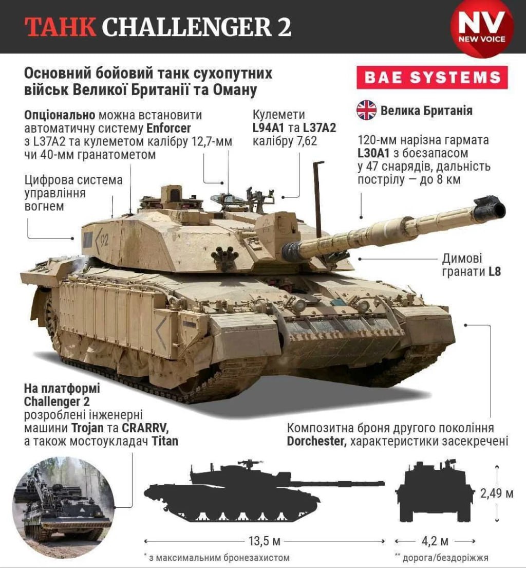 Також видання The Guardian повідомляє, що Британія оголосить передачу танків «Challenger 2» наступного тижня.