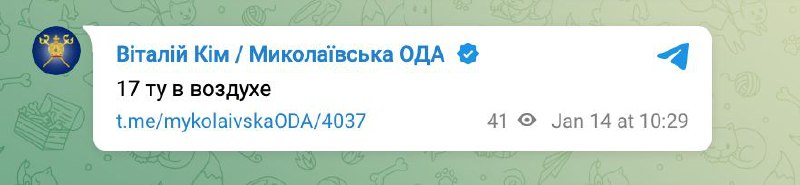 Віталій Кім повідомляє про 17 ворожих Ту в небі