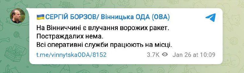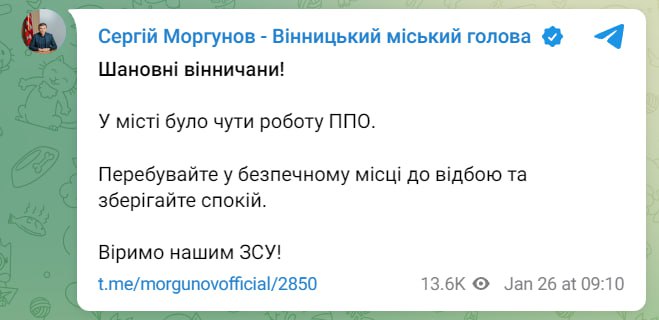 The city has air defense," said Vinnytsia Mayor Serhiy Morgunov.