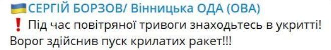 ‼️Йде air battle, - Head of Vinnytsia Regional Military Administration Serhiy Borzov
