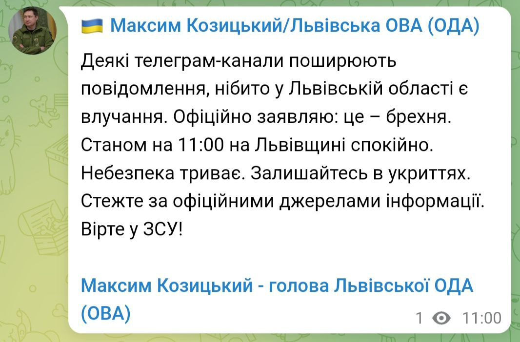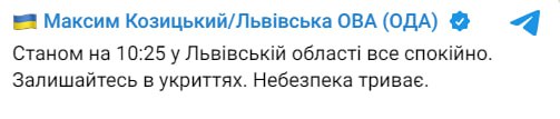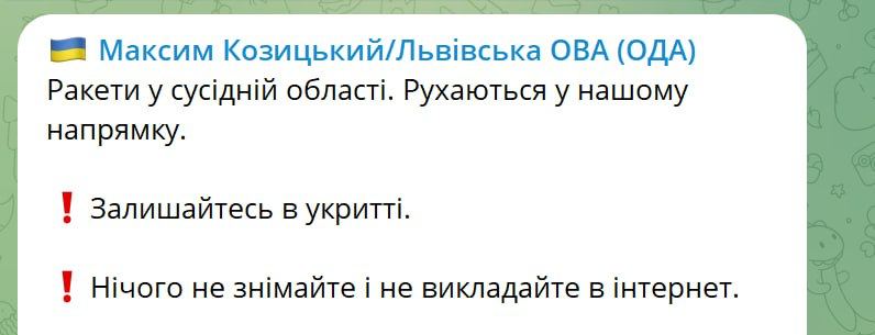 Будьте пильні. Тривога продовжується.