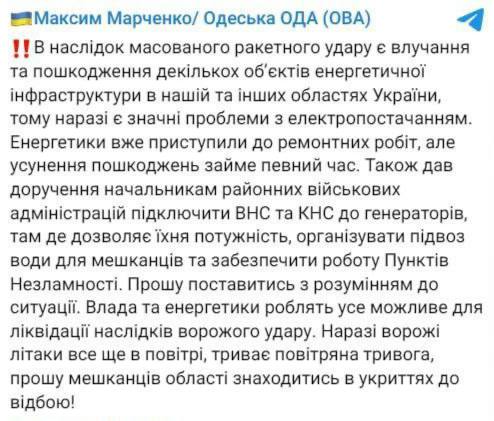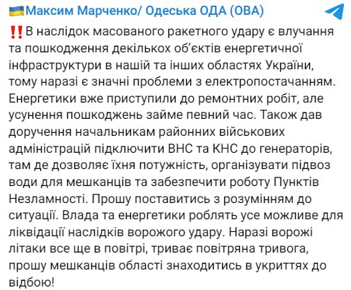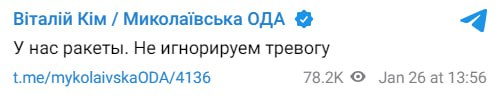 Odessa, do not panic yet, missiles on trajectory fly to our neighbors in Nikolaev