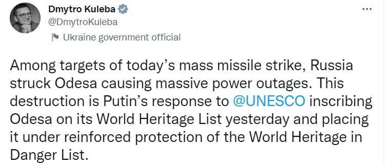 Unable to cope with our Armed Forces, the enemy is targeting civilian homes and energy facilities, hoping to sow darkness, fear and despair in our souls.