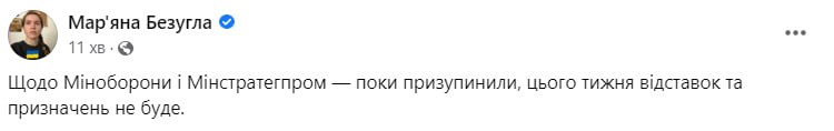 Натомість він пише, що наразі "очікуємо призначення очільників МВС і СБУ".