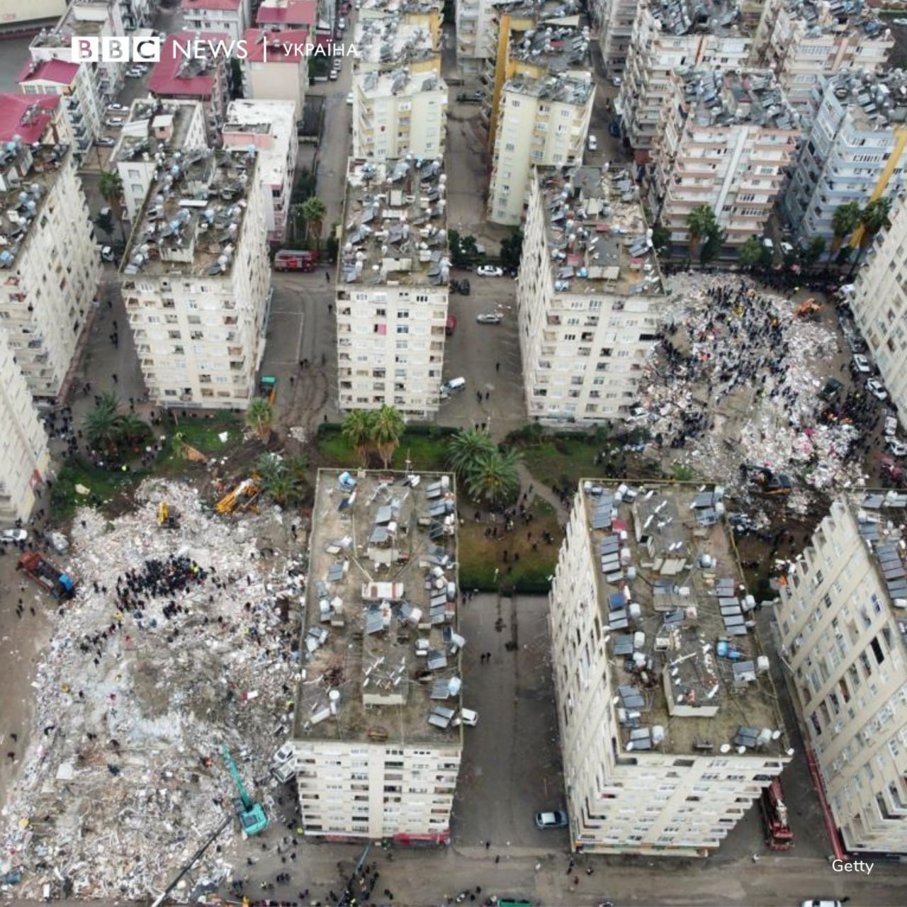 The scale is terrifying. The video shows at least three buildings that have collapsed like a house of cards.