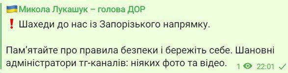 At night, the defenders of the sky shot down a batch of drones used by Russians to attack the Dnipropetrovs'k region. After that, the occupiers launched a missile at the Kryvyi Rih district. It hit an energy infrastructure facility there, causing serious damage and injuring a 46-year-old employee of the company.