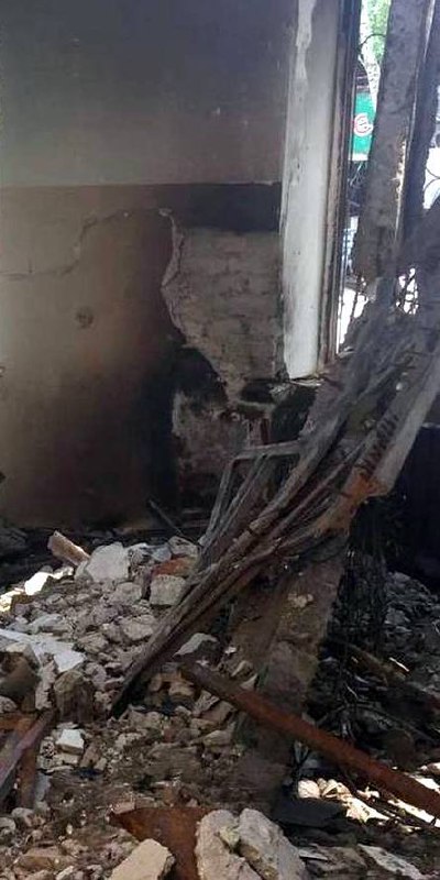 No people were injured. A dog was trapped under the rubble and was rescued