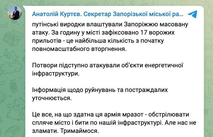 ❗️Запоріжжя зазнало найбільш масованої атаки від початку повномасштабної війни. У ніч на 10 лютого росіяни завдали 17 ударів по обласному центру за годину. Атаковано об'єкти енергетичної інфраструктури.