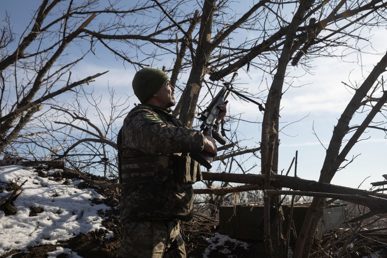 The Russians take the positions of the Ukrainian Armed Forces at one of the front lines.