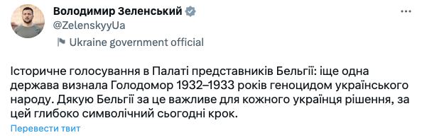 Бельгійський федеральний парламент визнав сьогодні Голодомор геноцидом українського народу: 117 за, 0 проти, та 10 утримались.