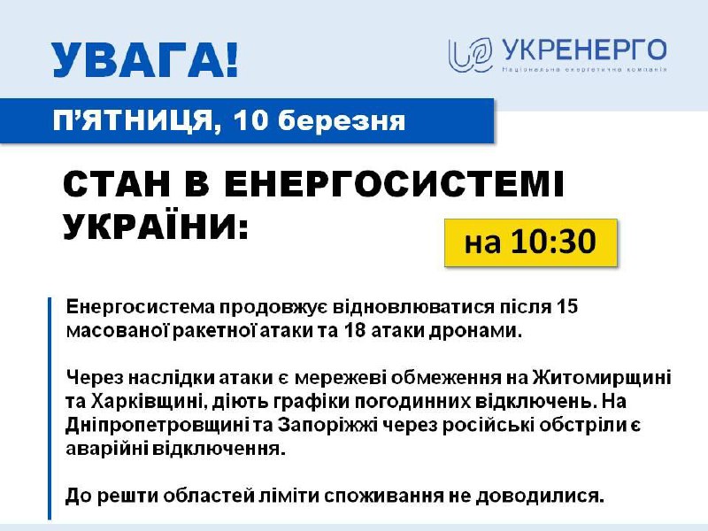 In the evening, Russian missiles continued to destroy critical infrastructure in our region.