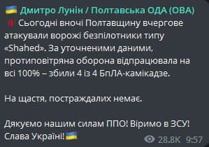 "The occupants launched two missile and 12 air strikes, including the use of two Shahed-136 UAVs. These drones were shot down by our soldiers. The enemy also fired 68 times from multiple launch rocket systems. Civilians were injured," the statement said.