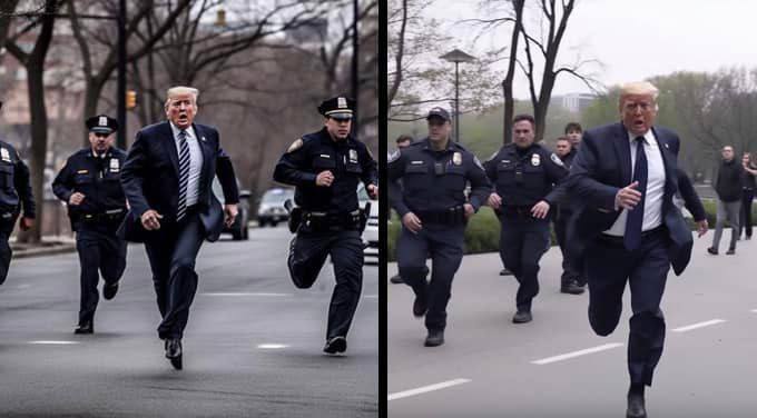 Трамп бежит, Мелания кричит на полицию. Искусственный интеллект показал, как может выглядеть арест Трампа