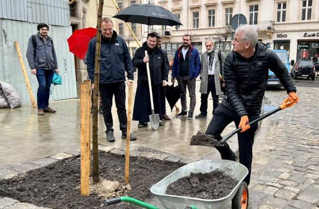 Famous historian Timothy Snyder visited Lviv and planted a tree on Rynok Square. This was reported on Facebook by Lviv Mayor Andriy Sadovyi.