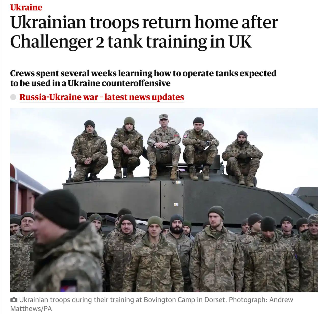 The British edition of The Guardian, commenting on the news, wrote that the crews and tanks will arrive in Ukraine in time for the expected spring counterattack by the AFU.