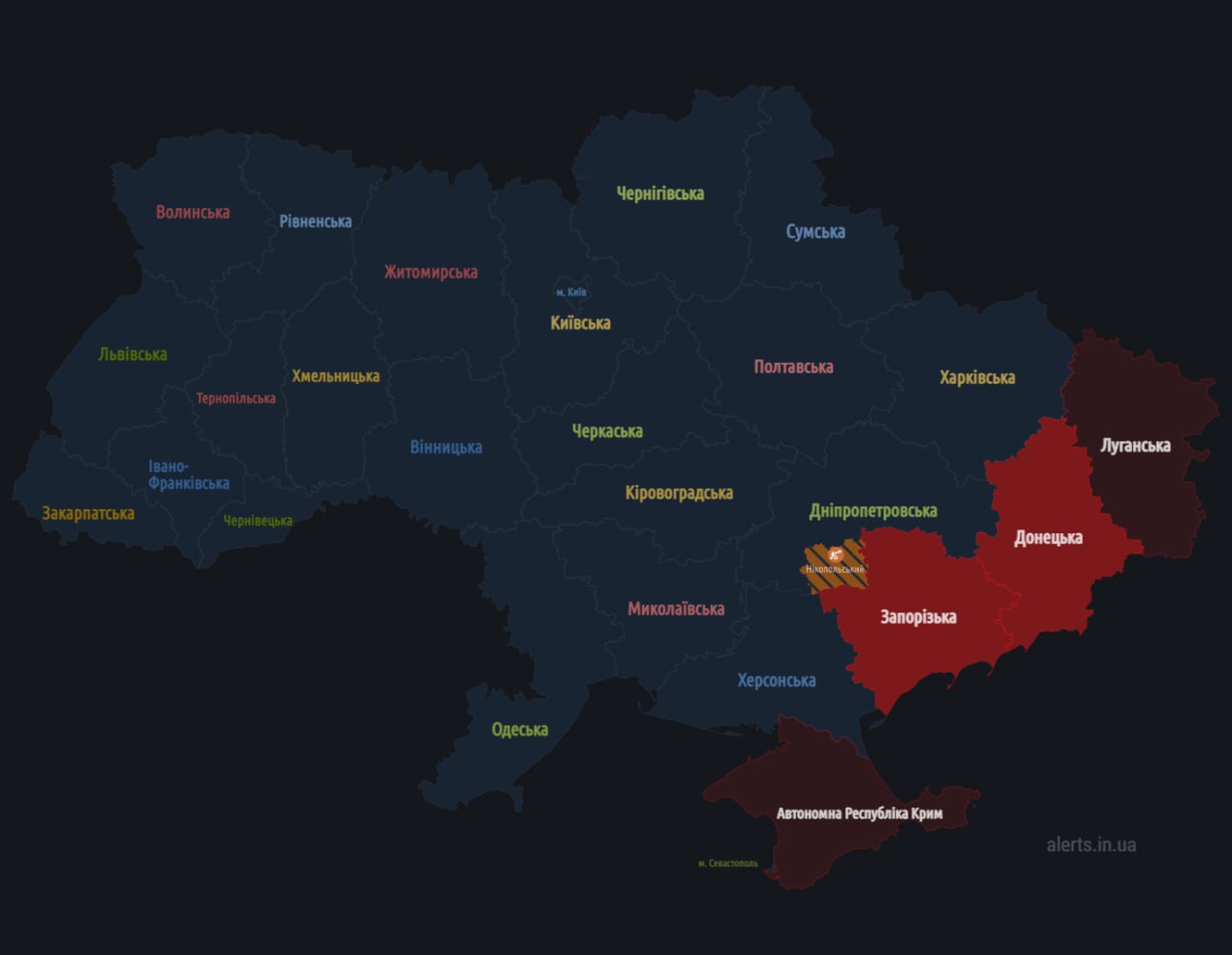Вночi на Днiпропетровщинi - без обстрiлiв.