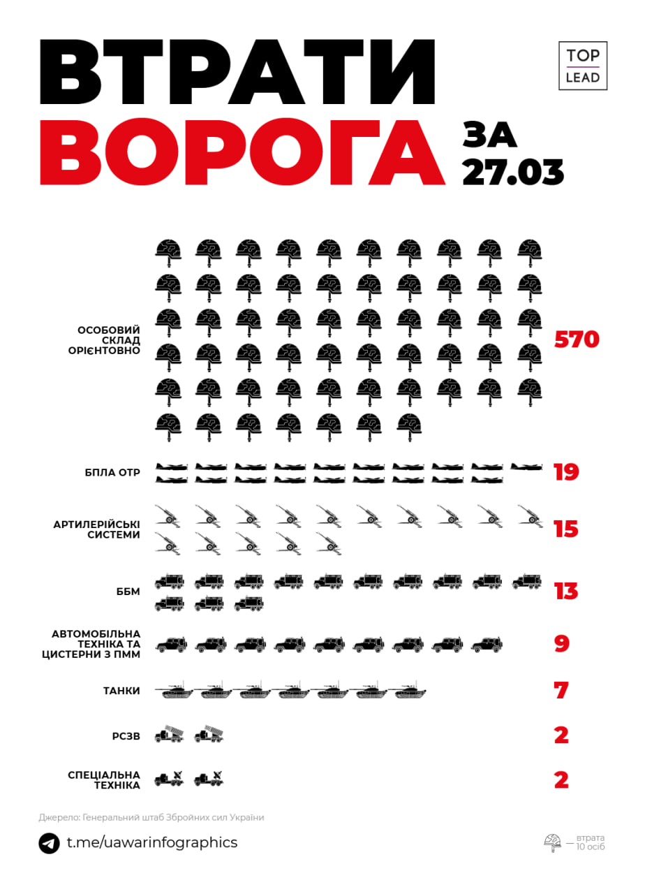 Update as of 06.00 on 28.03.2023 on the Russian invasion