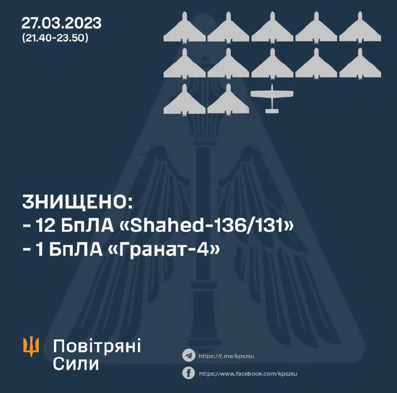 Overnight over Ukraine shot down 12 shahedin and one reconnaissance UAV