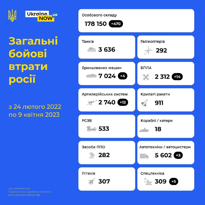 Загальні бойові втрати противника з 24.02.22 по 09.04.23