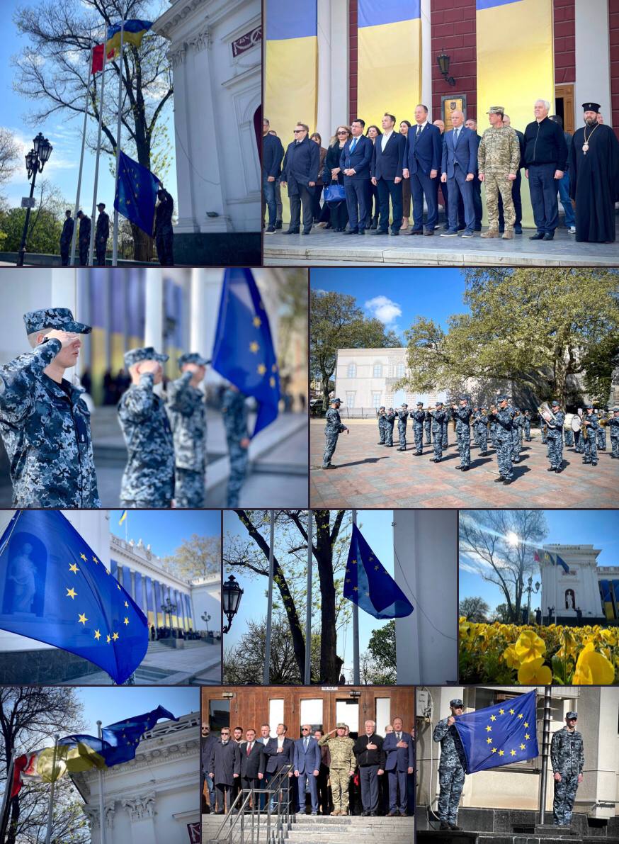 The ceremony of raising the EU flag also took place near the Odesa Regional State Administration building.
