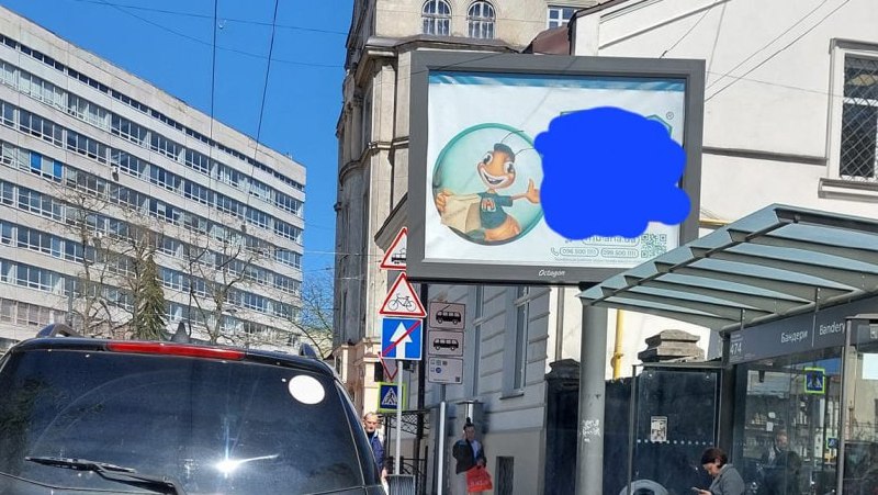 In Lviv, at the intersection of Antonovycha and Bandera, a billboard is blocking the traffic lights 🤨