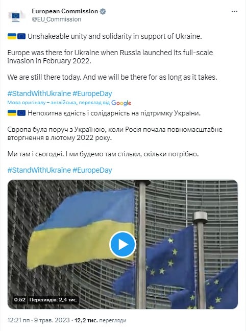 On May 8, 2023, President of Ukraine Volodymyr Zelenskyy signed a decree establishing Europe Day in Ukraine, which will be celebrated annually on May 9 together with the European Union.