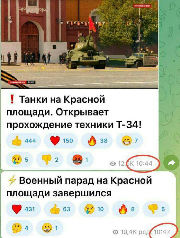 На побєдоносному параді у москві проїхався лише музейний Т-34, який вони назвали "гордастью".