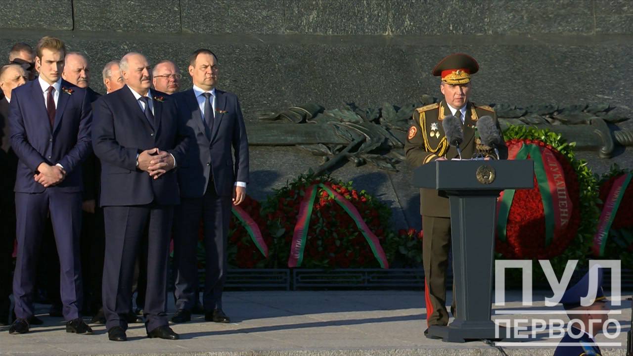 В Минске самопровозглашенный лишь возложил цветы к обелиску Победы, а церемониальную речь вместо него произнёс министр обороны Хренин.