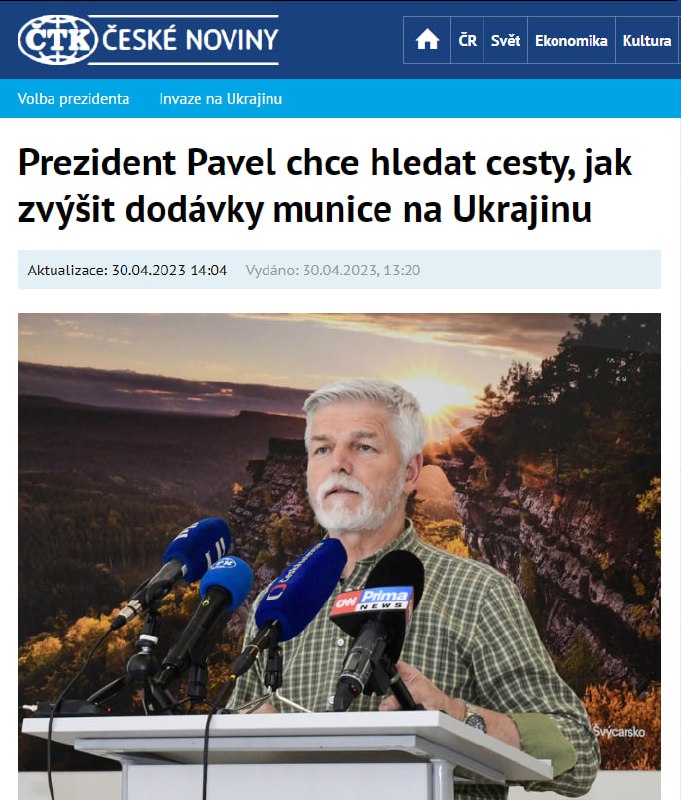 "Today Ukraine needs ammunition more than anything else for a successful defense. Technology, of course, is also in short supply, but the critical shortage of ammunition not only limits Ukraine's ability to defend itself effectively, but to a certain extent also limits its ability to mount a successful counteroffensive," Ceske Noviny quoted Pavel as saying.