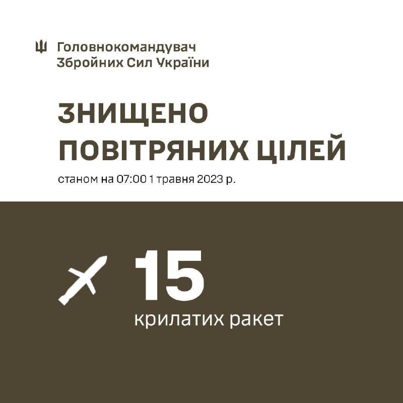 Around 02:30 am on May 1, Russians attacked Ukraine with 18 missiles from strategic aircraft. Ukrainian air defense forces destroyed 15 of them.