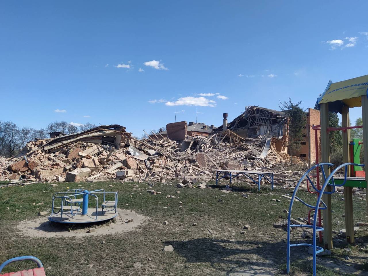As a result of the air strike in the village of Lizunovka, a 14-year-old child was killed and two other civilians were injured. The school building was also partially destroyed and private houses were damaged.