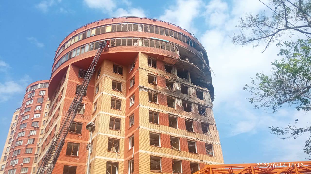A business center, a residential complex, an educational institution, and shops in the city center were damaged. At least 6 people were injured.