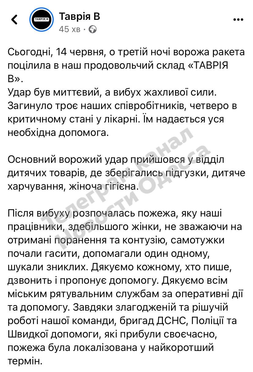 Consequences of a missile strike on Odesa, three people were killed and 13 wounded.