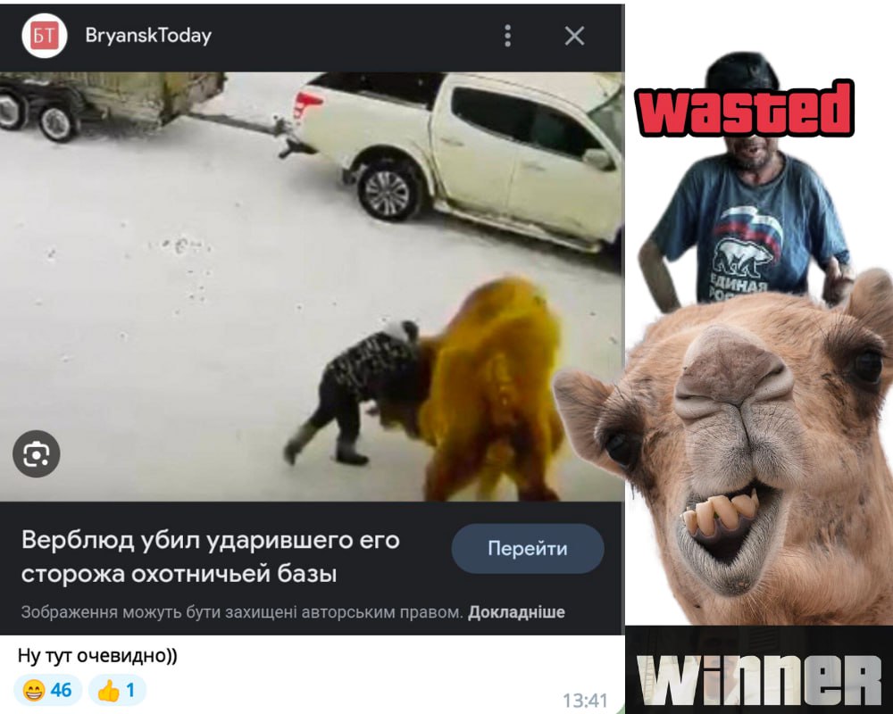 Шановне панство, знаємо, що мали ще в понеділок сказати переможця в конкурсі на найтупішу смерть русака від копит, лап чи хвостів тварин. Але вся голова й руки в розслідуванні, яке ми незабаром запостимо 😏
